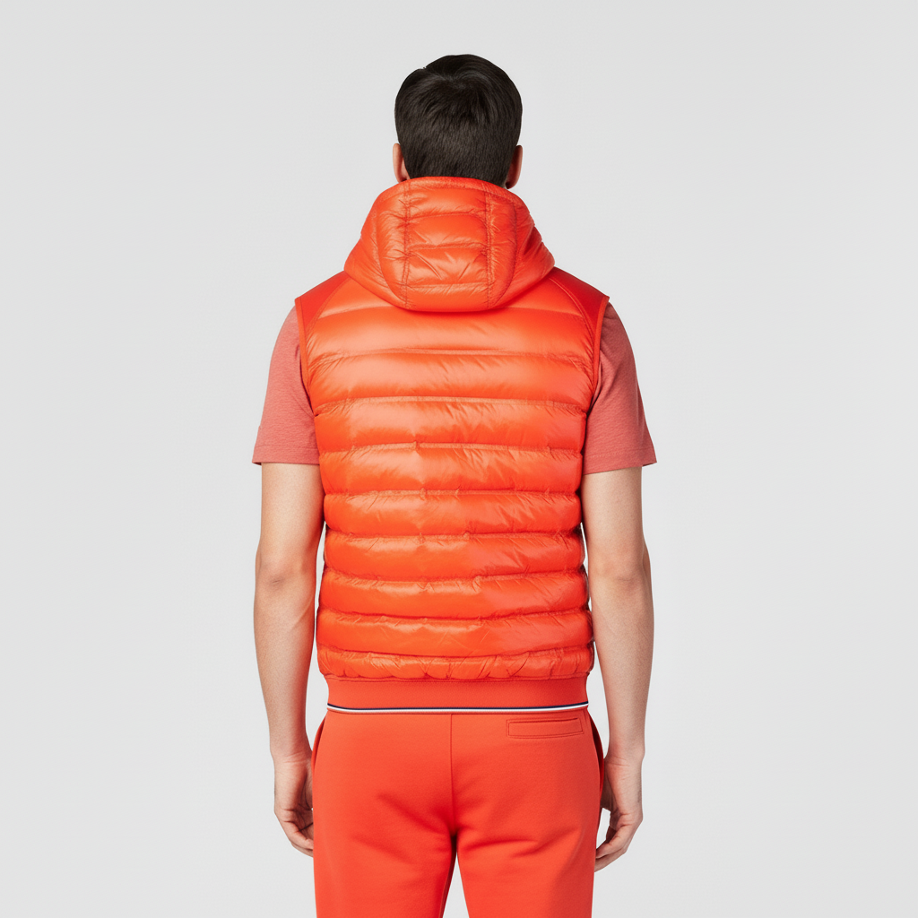 Esta chaleco combina estilo urbano y funcionalidad premium. Incorpora un cierre de cremallera, además de una capucha ajustable mediante cordones con elegantes terminales metálicos.