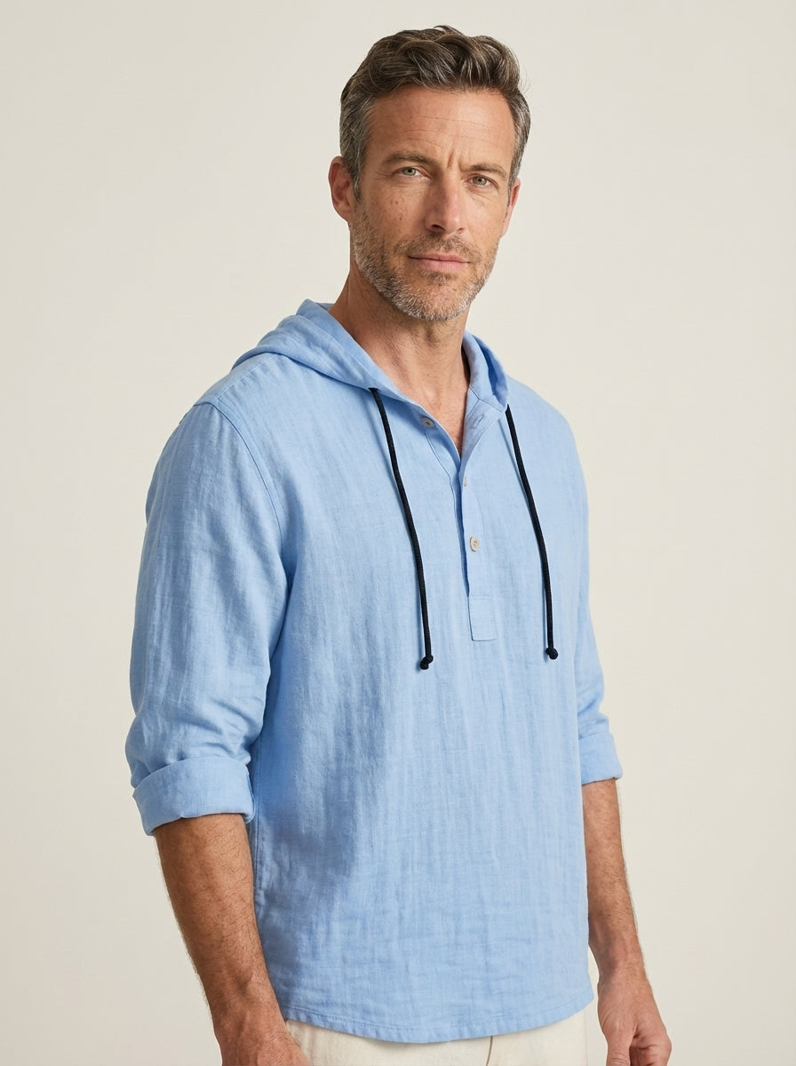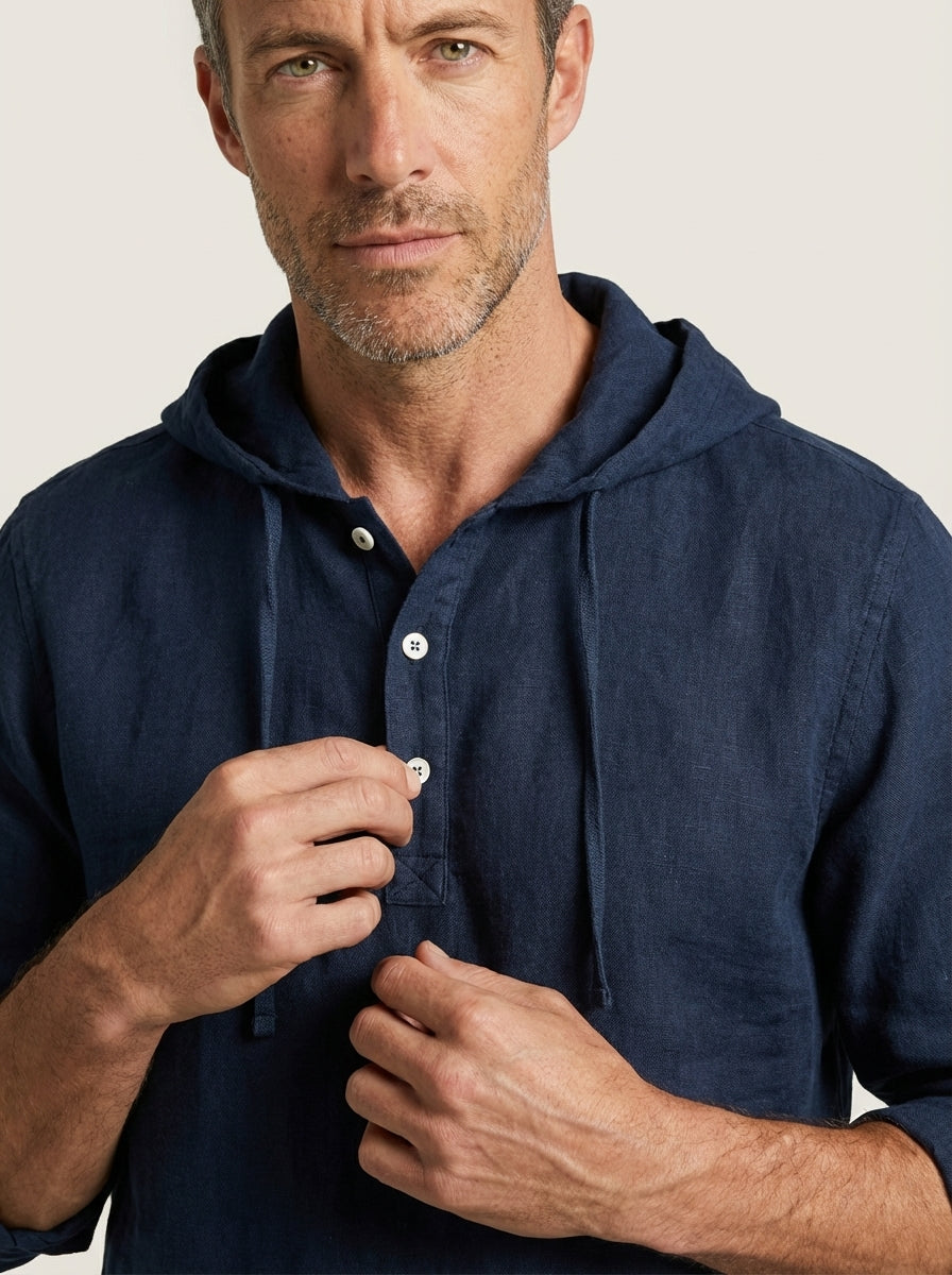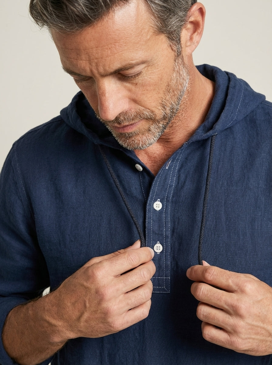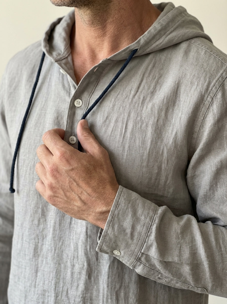 Eleva tu estilo con esta camisa con capucha de lino natural, perfecta para quienes buscan elegancia y comodidad en el día a día.