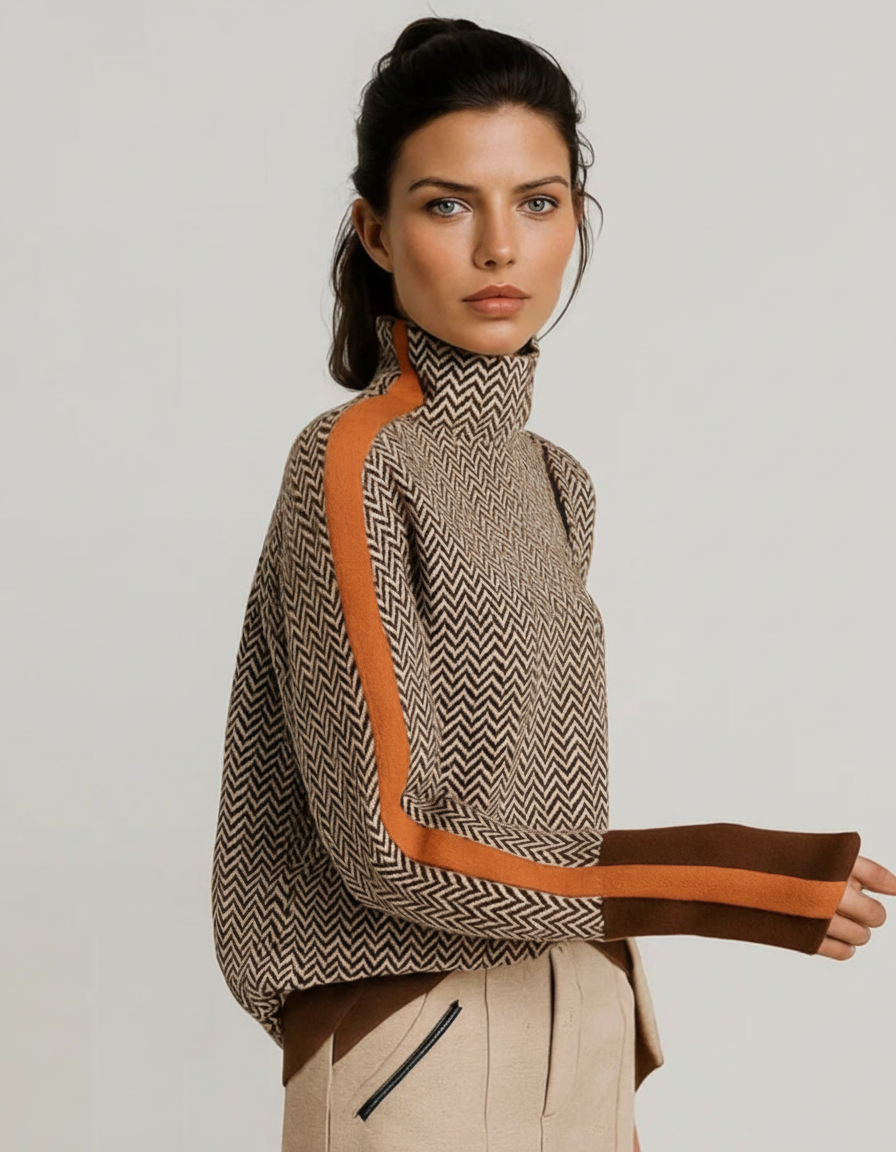 Martina combina elegancia moderna con comodidad práctica: la prenda ideal para los días frescos. Sus franjas en contraste aportan un diseño dinámico y actual, mientras que el cuello alto no solo añade estilo, sino que también te mantiene abrigada.