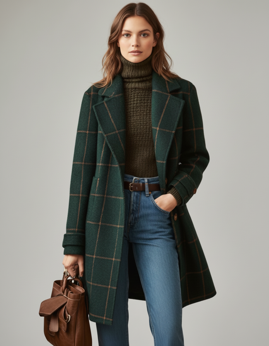El Abrigo Valeria nace precisamente de esa necesidad. Su línea limpia, su corte impecable y su estampado a cuadros aportan una elegancia sin esfuerzo, perfecta para quien quiere destacar con clase.